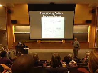Tinham uns figurões por aqui, como o Daniel Dennett, Stephen Neale, Michael Devitt, Stephen Stich, Joshua Knobe, e vários outros. Alunos de pós de vários departamentos legais pelo mundo também vieram, e só o fino da bola. Eles fazem um concurso entre apresentação de alunos, e o melhor trabalho ganha um cheque, cujo valor eu fiquei sem saber, mas o cara que ganhou (Chaz Firestone) é bom de serviço, fez uma comunicação de alto nível.